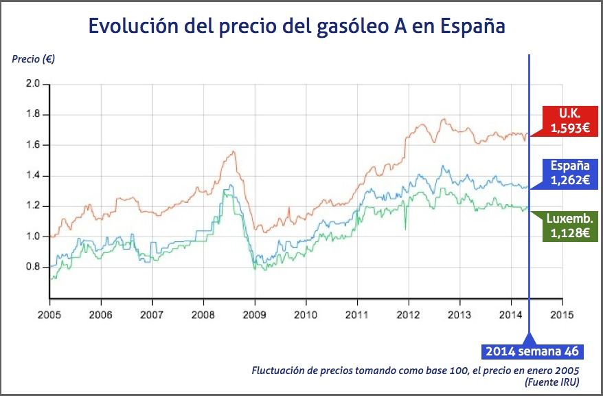 Estos niveles se mantienen así en mínimos para ambos combustibles desde el segundo semestre de 2011, momento en el que iniciaron una escalada de precios que, pese a contenerse en el primer semestre de 2012, se intensificó en el verano de ese año hasta alcanzar máximos históricos.