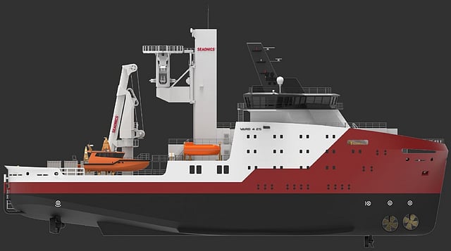 The vessel's propulsion setup consists of two 1,700ekW and two 940ekW main generators and a 1,500kWh battery pack. These drive two 1,500kW azimuthing thrusters housing 2,600mm fixed-pitch propellers, two 1,500kW side tunnel thrusters housing 2,500mm propellers and an 880kW retractable thruster housing a 2,200mm propeller, thus providing improved manoeuvrability.